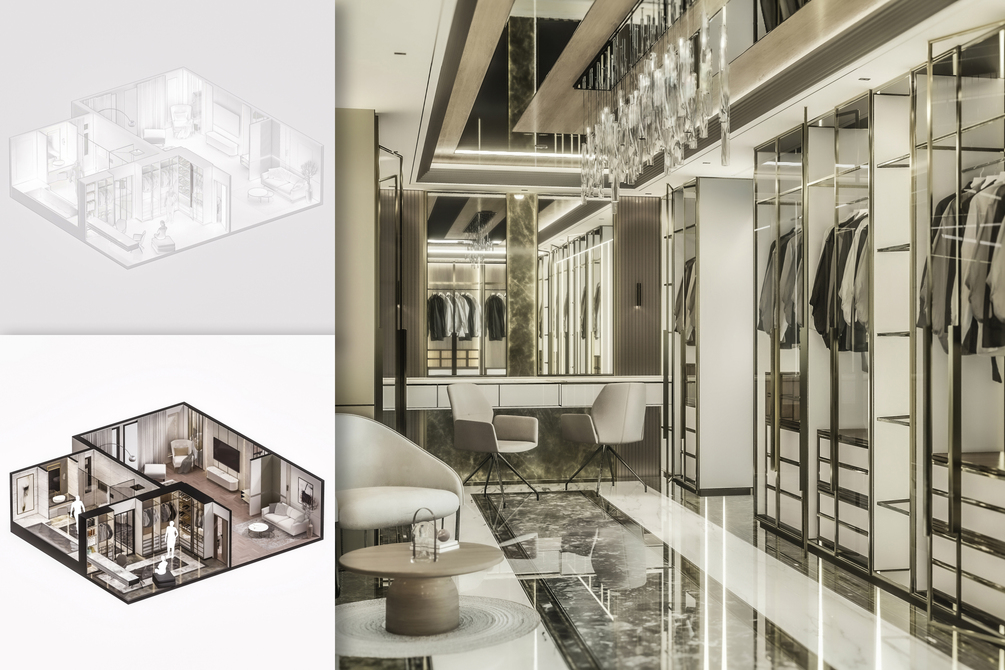 - 1 SketchUp file (.skp) & 1 Isometric SketchUp file (.skp) of interior 3D models with complete textured mapping, grouped massing, fixtures, and entourage are included in this package.