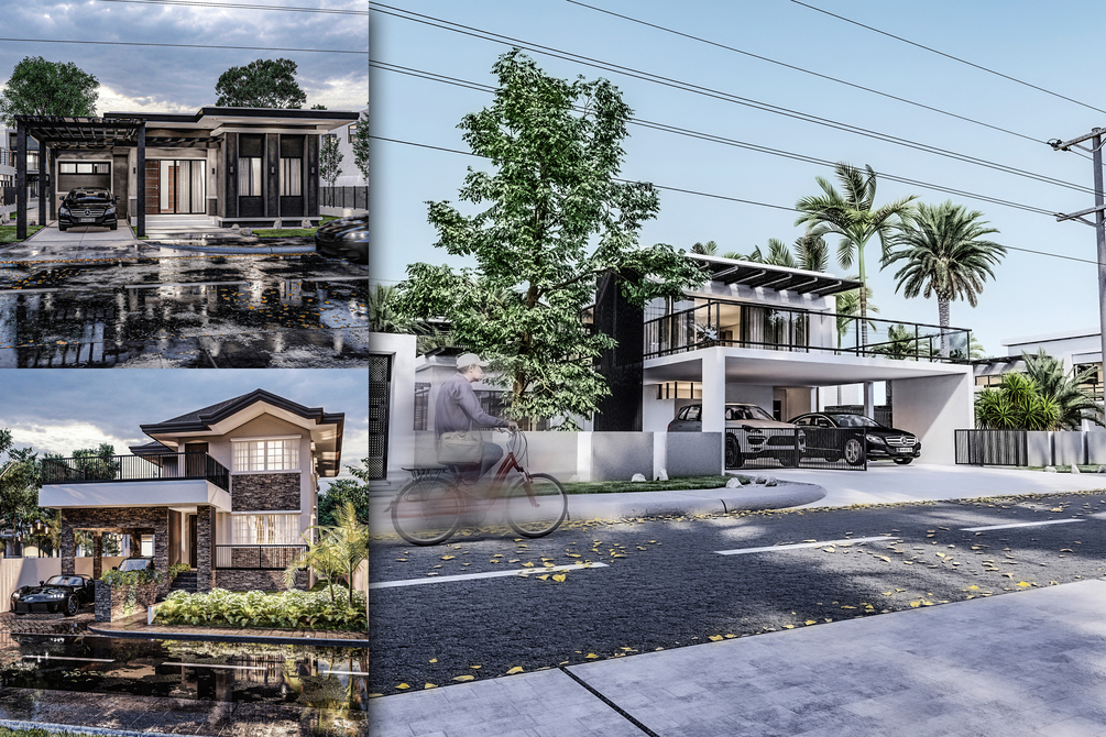 - 3 SketchUp files (.skp) of exterior 3D models with complete textured mapping, grouped massing, fixtures, and entourage are included in this package.