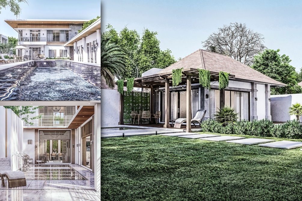 - 3 SketchUp files (.skp) of exterior 3D models with complete textured mapping, grouped massing, fixtures, and entourage are included in this package.